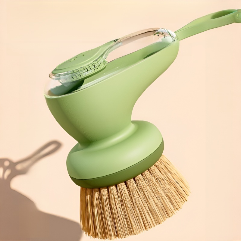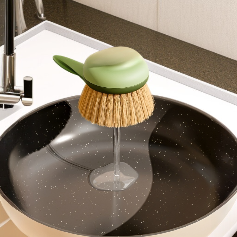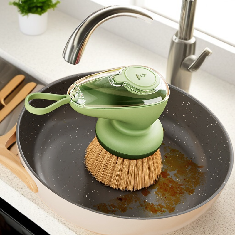 자동 수액 압출 기능으로 편리한 냄비 세척, 손상 없이 깔끔한 청소, 내구성 강한 브러쉬, 주방 필수 아이템, 사용이 간편한 게으름뱅이 냄비 브러쉬.